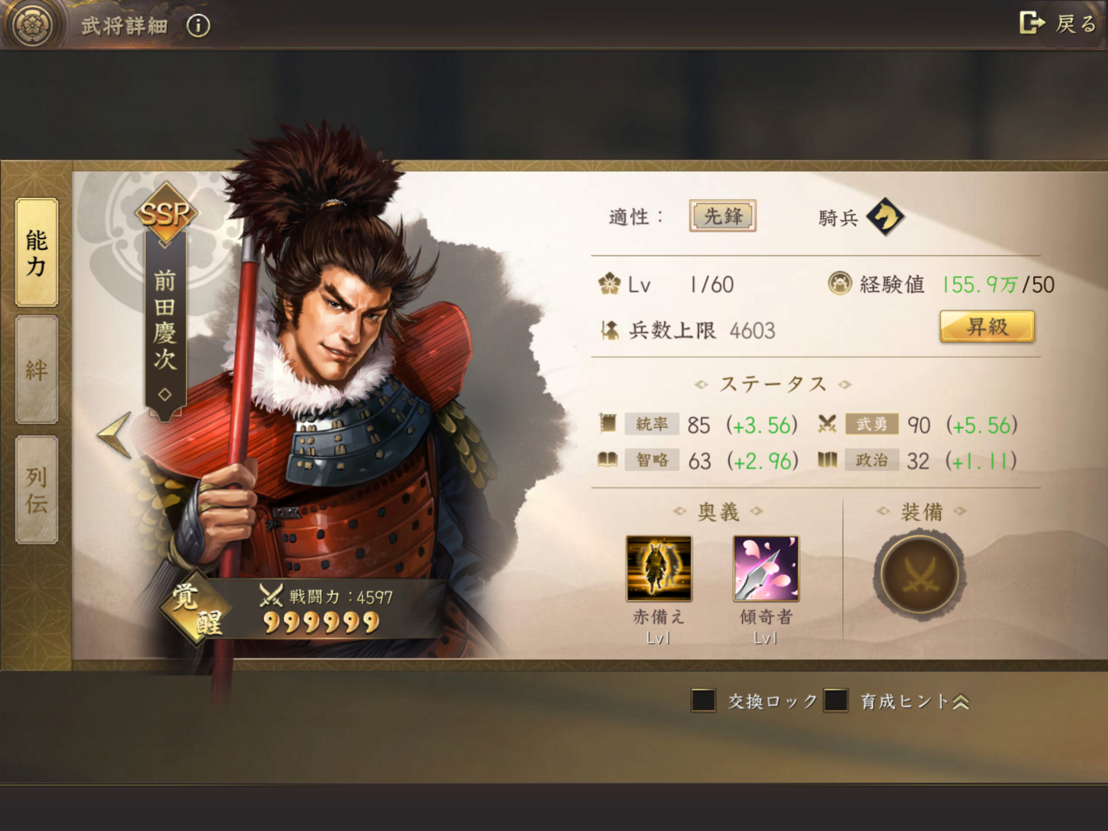 | SSR前田慶次 | 武 | 騎兵 | ||