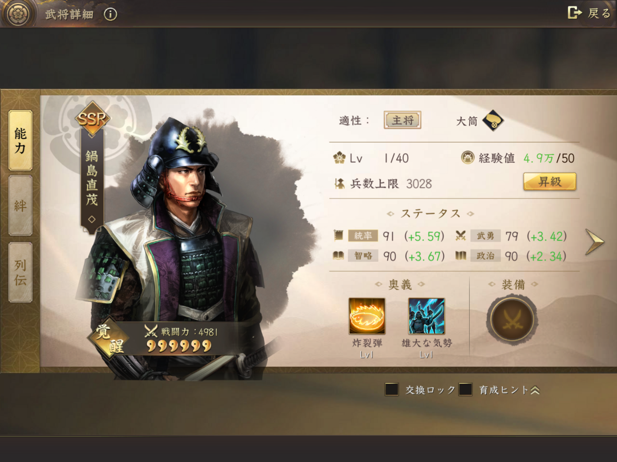 | SSR真田幸村 | 1.4 | 0.0714 | 武 | 騎兵 |